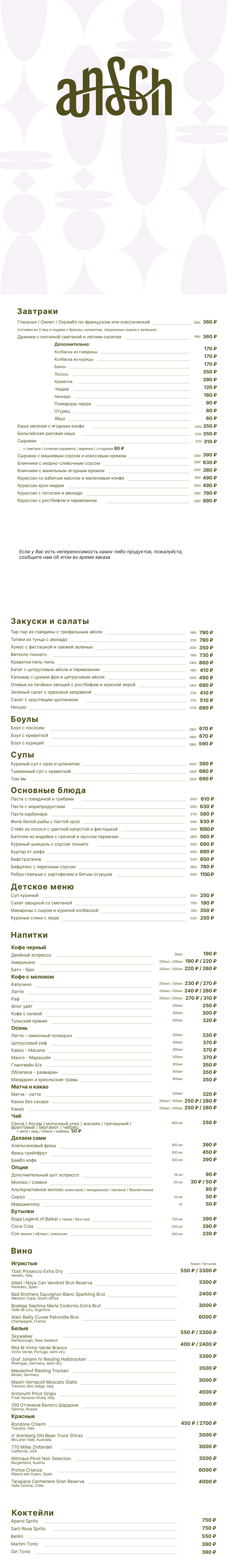 Ansch bistro — авторский проект городского бистро, где ценятся ясность вкуса и красота в деталях.